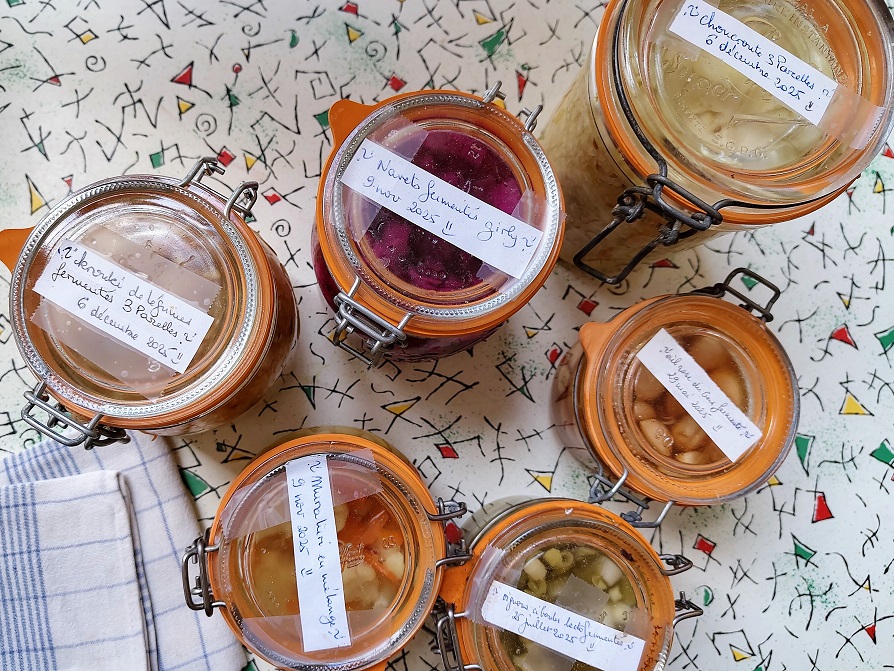 Pendant la pause, quelques données techniques sur la manière de fermenter : au sel ou en saumure (voir l’article de Ni cru ni cuit sur le sujet), le temps de repos, les manifestations qui ne doivent pas inquiéter (ça chuinte, ça coule…), la patience d’attendre avant d’ouvrir le bocal, l’utilisation par petites touches, pour rehausser le goût, réveiller une recette, l’absence de risque sanitaire… En particulier, si cela sent horriblement mauvais à l’ouverture, c’est que l’opération a raté, ne pas consommer et vider le contenu au compost. Marie-Claire Frédéric détaille tous les cas qui peuvent sembler étonnants et elle dédramatise, tout en indiquant les vrais cas où le bocal n’est pas consommable : SOS, mon bocal semble bizarre, faut-il s’inquiéter ?