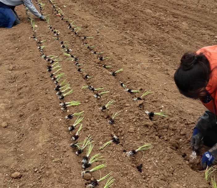 Quelle belle journée et que d’avancées pour la ferme : 600 m d’oignons plantés, plusieurs km d’oignons désherbés, 150 m de fraisiers flambant neufs sans adventices et… plusieurs centaines de piments et poivrons repiqués ainsi que 5 ha de lentilles roulées au tracteur. On n’oubliera pas le délicieux banquet, les fous rires et tout le reste…